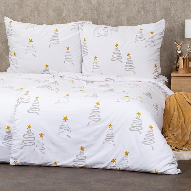 vorte si doma sviatočnú náladu s vianočnými bavlnenými obliečkami Christmas tree. Tieto obliečky v čistej bielej farbe sú zdobené štylizovanými vianočnými stromčekmi. Vyrobené sú zo 100% bavlny, vďaka čomu poskytujú neobyčajné pohodlie a jemný dotyk, ktorý si zamilujete.