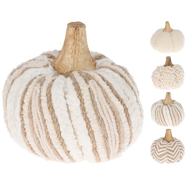 DARČEK: Dyňa dekorácia pletená, bavlna mix, biela, hnedá, 100x100x110 mm