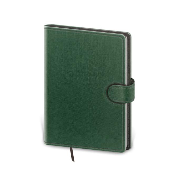 Týždenný vreckový diár s vymeniteľnými doskami. Praktické dosky diára su vybavené pútkom na pero, magnetickou uzavieracou klapkou a ich okraj zdobí obšitie niťou. Dosky je možné použiť opakovane pre diár i zápisník, preto neobsahuje razbu letopočtu. Kvalitná koženka umožňuje dosiahnuť vynikajúce výsledky pri razbe bez fólie. Rozmery 9 x 14 cm, 128 strán. Farba zelená/sivá. Náhradná náplň obj.kód DNA436.
