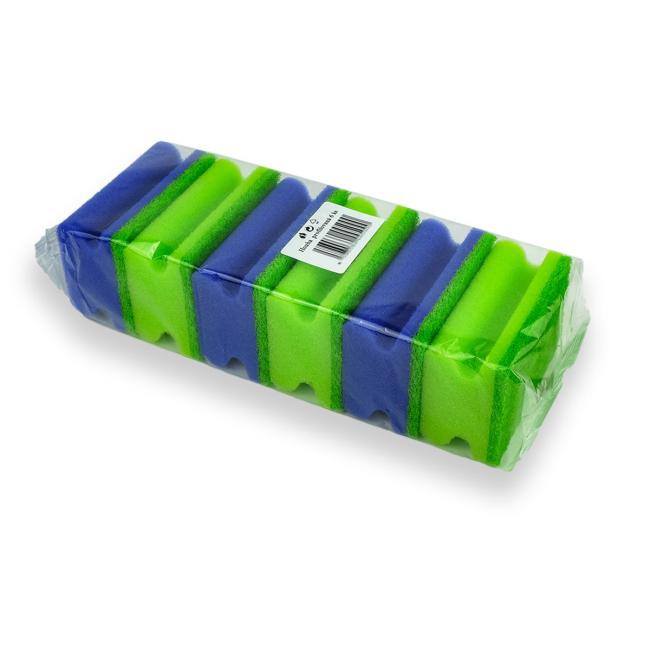 Tvarovaná hubka s abrazívnou vrstvou, trendy farby.