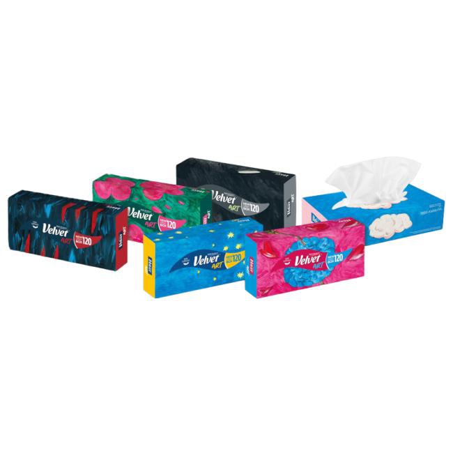 Velvet Art sú kozmetické obrúsky, ktoré prekvapia - vo vnútri krabičky je 120 vreckoviek plných hebkosti. Zvonku sú vyobrazené skutočné maľby umelca Pawła Kowalewského. Každá krabička je „malým umeleckým dielom“ s asociáciami, ktoré sú pre každého príjemcu iné! Sýte farby a pútavé grafické motívy vyvolávajú emócie a dotýkajú sa umeleckého cítenia, ktoré má v sebe každý z nás! Vezmite si umenie domov. 120 útržkov, 3 vrstvy, 100% celulóza