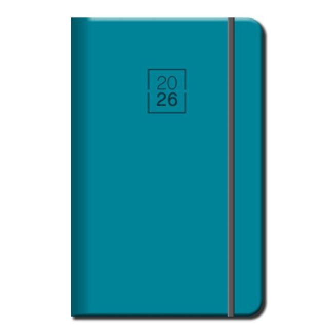inečný týždenný mini diár v krásnej tyrkysovej farbe potiahnutý kvalitným termocitlivým poťahom. Diár je v pevnej väzbe s prednou penovou doskou, farebnou gumičkou. Slovenské kalendárium.