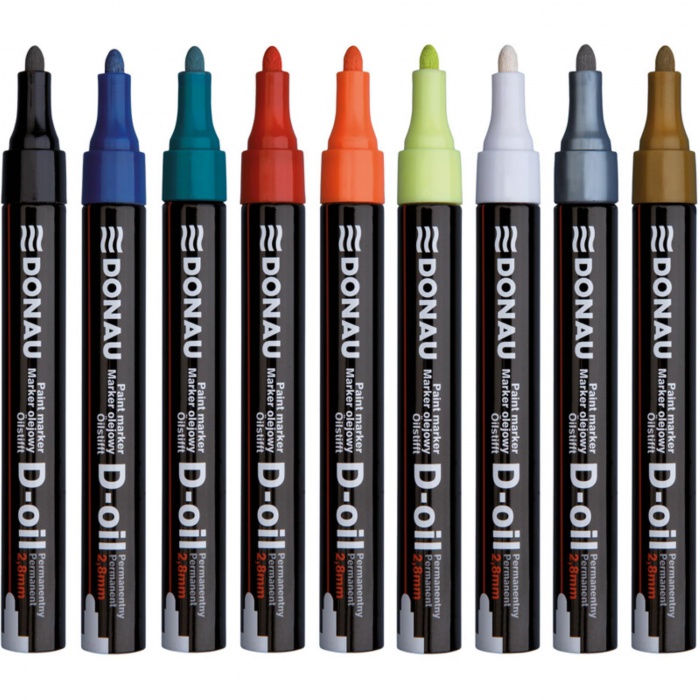 Rýchloschnúci permanentný vodeodolný popisovač s kovovým telom. Okrúhly hrot priemeru 2,8 mm.
