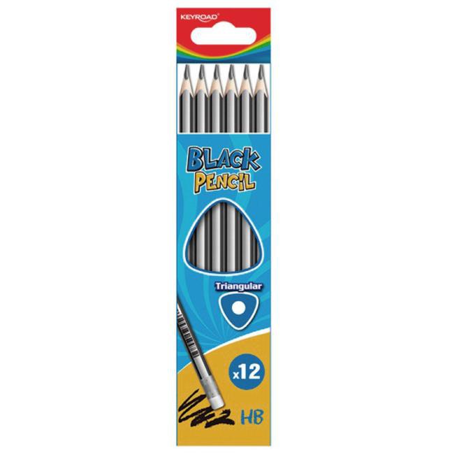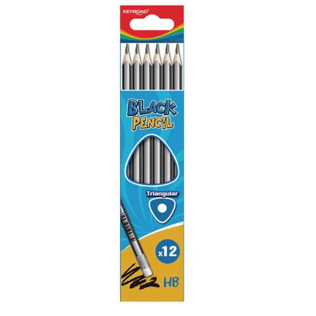 Drevená ceruzka HB s gumou, trojuholníková. Balenie: v kartónovom balení, 12 ks. Farba: sivá.