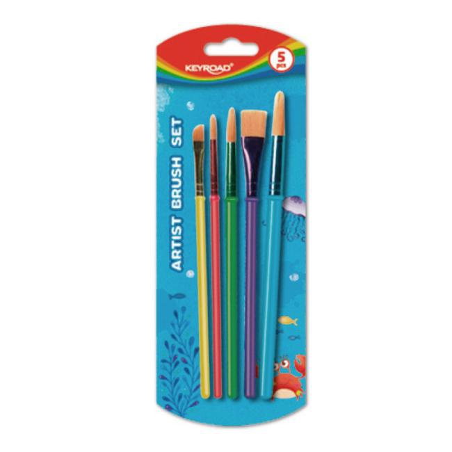 Maliarske štetce, kovová objímka a plastová rukoväť. Mix veľkostí a tvarov, syntetický hrot. 5 ks v jednej sade. Farba: mix farieb.