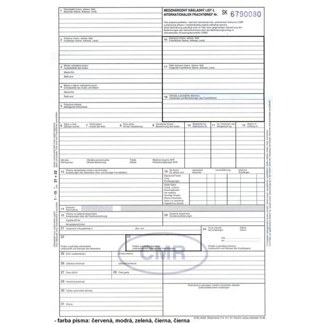 Tlačivo CMR 5-listov SK/DE