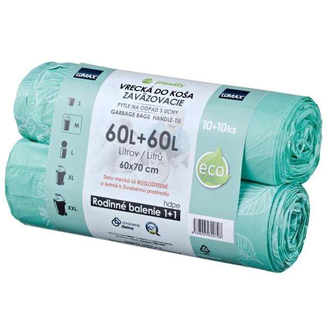- Ekologické vrecká šetrné k životnému prostrediu - Rozložiteľné - Rodinné balenie 1+1 rolka - Rolka obsahuje 10 ekologických recyklovateľných sáčkov na odpad (balenie 20 ks) - Odolné proti roztrhnutiu a úniku tekutín