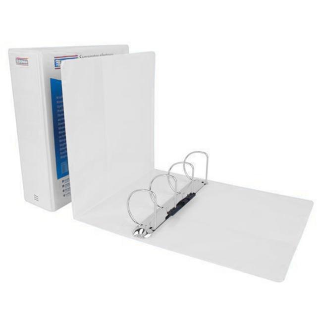 zentačný 4-krúžkový zakladač A4 s D-krúžkovým mechanizmom, dvomi vreckami na vonkajších aj vnútorných krytoch a jedným vreckom na chrbte.. Vyrobený z kartónu s hrúbkou 2,4 mm a gramážou 1400 g/m², potiahnutý z oboch strán ekologickou polypropylénovou fóliou. Krúžkový mechanizmus: 4 RD, vzdialenosť medzi krúžkami: 80 mm, priemer krúžku: 65 mm. Farba: biela Šírka chrbta: 100 mm Rozmery: 295 x 315 x 97 mm Formát: A4