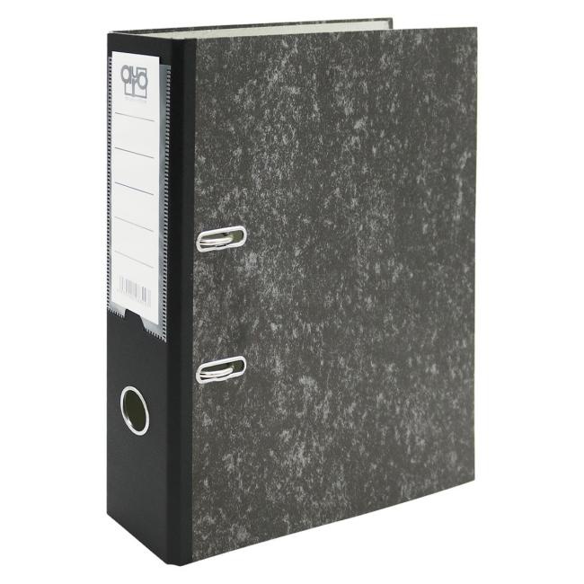 Kartónový pákový zakladač - poťah čierny mramor. Chrbtový otvor pre lepšiu manipuláciu, chrbát 7,5 cm polepený čiernou plastovou fóliou na spevne...